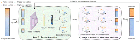 该论文探索了一个更加一般化的标签噪声学习场景,即真实长尾分布下的标签噪声学习问题。这个问题的主要挑战在于训练数据标签的观测分布与其真实分布的不一致性,以及在尾部类别中噪声样本和干净样本的难以分离。为了解决上述问题,本文提出了一种名为TABASCO的两阶段样本选择方法。第一个阶段,根据模型的输出和特征信息,采用加权JS散度和自适应质心距离来逐类分离干净样本和噪声样本;第二阶段,为每个类别确定最优的样本分离维度,并选择相应的干净样本簇;最后,采用半监督学习范式,将选定的干净簇视为标记数据来更新模型。为了公平有效地验证不同方法在该问题下的表现,本文基于Red mini-ImageNet和CIFAR-10N/100N构建了两个具有真实世界噪声和真实长尾分布的测试基准。相较于现有方法,TABASCO提升了2%至8%的准确率。