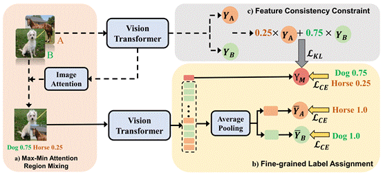 CutMix是一种重要的数据增强策略,对于视觉变换器(ViTs)的性能和泛化能力至关重要。然而,混合图像与相应标签之间的不一致性会损害其有效性。现有的CutMix变体通过生成更一致的混合图像或更精确的混合标签来解决这个问题,但不可避免地引入了沉重的训练开销或需要额外的信息,从而削弱了使用的便利性。为此,该论文提出了一种新颖而有效的自我激励图像混合方法(SMMix),该方法通过训练模型本身来激励图像和标签的增强。具体而言,论文提出了一种最大-最小注意力区域混合方法,丰富了混合图像中的注意力聚焦对象;接着引入了一种细粒度标签分配技术,通过细粒度监督来共同训练混合图像的输出标记。此外,该论文设计了一种新颖的特征一致性约束,以使混合图像和未混合图像的特征对齐。由于自我激励方式微妙设计,SMMix在降低训练开销和性能方面具有显著优势,特别是在ImageNet-1k数据集上,SMMix将DeiT-T/S/B,CaiT-XXS-24/36和PVT-T/S/M/L的准确性提高了超过+1%。该论文提出的方法的泛化能力还在下游任务和分布外数据集上得到了证明。