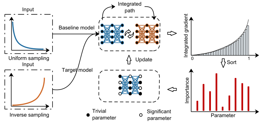 目前主流的深度超分模型主要关注网络架构设计以及优化策略,忽略了对训练数据的关注。事实上,大多数超分方法都是在整幅图像上通过随机采样图像块对来训练模型。然而,图像内容的不均匀性使得训练数据呈现不平衡分布,即易重构区域(平滑)占据了大部分数据,而难重构区域(边缘或纹理)的样本很少。基于这个现象,本论文考虑重新思考当前仅使用统一数据采样方式训练超分模型的范式,提出了一种简单而有效的双采样参数归因方法,其中双采样包括均匀采样和反转采样,通过引入反转采样来调和不平衡的数据偏差。前者旨在保持数据的原始分布,后者旨在增强模型对困难样本的特征提取能力。此外,引入积分梯度对两种采样数据交替训练的模型中每个参数的贡献进行归因,从而筛选出不重要的参数进行进一步细化。通过逐步解耦参数的分配,超分模型可以学习到更紧凑的表示。在公开数据集上的实验表明,本论文所提方法可以显著提升基线模型的性能。