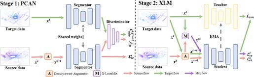 三维点云无监督域自适应分割可有效减少繁重且昂贵的人工数据标注成本。本文设计了一基于统计的密度指导转换器来解决因不同传感器之间采样模式不匹配所引起的点密度不匹配问题。其通过为每个域生成与其它域相似的点云扫描,以在输入端缩小域差异。并在此基础上,提出了DGT-ST双阶段点云跨域分割框架。在两个公开的合成到真实(SynLiDAR