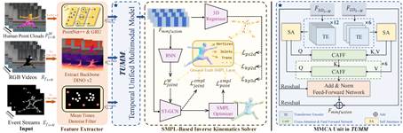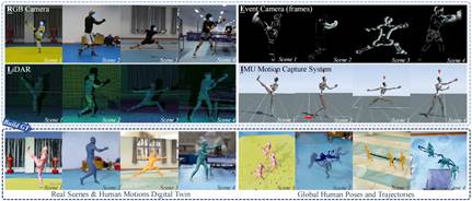 针对复杂且快速的全局人体动作捕捉问题,我们基于激光雷达、IMU、RGB相机和事件相机构建了多模态人体运动数据集-RELI11D,包括10 名采集者在 7 个不同的真实体育场景中进行的5项体育运动动作。本文还提出了一种全局人体姿态估计任务上的多模态Baseline-LEIR,设计了适用于人体姿态重建的交叉注意融合策略。实验表明,LEIR 在快速运动和日常运动方面表现出较好性能,且验证多模态数据集特征可有效提升HPE 性能。