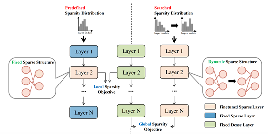 本文针对后训练稀疏相较于传统稀疏在高稀疏率下性能明显下降的问题,试图通过分析对稀疏性能有重要影响的三个因素来改善这种差异。具体来说主要包括:(1)促进稀疏网络从密集网络学习有效知识的稀疏目标;(2) 一种减少再生长的进化搜索算法来确定最佳稀疏分布;(3) 基于前两点的动态稀疏训练过程,来全面优化稀疏结构,同时确保训练稳定性。本文提出的UniPTS框架在广泛的基准测试中被验证为比现有的PTS方法优越得多。作为示例,当在ImageNet上将ResNet50的稀疏率剪枝到90%时,UniPTS框架将POT方法的性能从3.9%提高到68.6%。