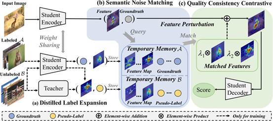 指向性目标分割(RES)任务旨在给定文本提示下,在图像上分割出文本指向的目标实例。为了解决传统全监督训练范式需要大量分割掩码而引发的标注难题,本文提出半监督RES训练框架SemiRES,有效地利用少部分有标注数据和大量易获得无标数据。在缺乏数据的前提下,半监督框架中教师模型生成的伪标签常常存在有噪声、欠分割、过分割现象,特别是在实例对象边界处细节有所缺失。为了解决这一问题,SemiRES巧妙地使用了以精确边界标注而闻名的Segment Anything Model(SAM)以提高粗糙伪标签的质量。具体地,本文提出了两种匹配策略:最优匹配策略策略(IOM)和合成策略(CPI),旨在从SAM的输出中提取最准确的掩码去优化伪标签,从而进一步引导学生模型的训练。此外,在SAM没有匹配出合适的掩码时,本文设计了像素级调整(PWA)策略,根据伪标签的置信水平对损失函数进行逐像素调整。SemiRES在三个RES基准测试集RefCOCO、RefCOCO+和G-Ref上的广泛实验表明其有效性。特别地,仅使用1%的标记数据,SemiRES在RefCOCO val集上,相对同等标注数据的有监督基线模型提升了18.64%。