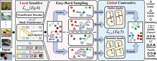 目前的盲图像质量评价(BIQA)模型侧重于挖掘“局部”上下文,即单个图像内的信息与图像绝对质量之间的关系,忽略了训练数据中不同图像之间相对质量对比的“全局”上下文。本文提出基于感知上下文和敏感性的BIQA方法(CSIQA),一种新的对比学习范式,将"全局"和"局部"视角无缝集成到BIQA方法中。具体来说,CSIQA包括两个主要部分: 1) 质量上下文对比学习模块,该模块配备不同的对比学习策略,以有效捕获数据集全局上下文中潜在的质量相关性。2) 质量感知掩码注意力模块,利用随机掩码保证与视觉局部敏感度的一致性,从而提高模型对局部失真的感知能力。 在多个标准BIQA数据集上的实验结果表明,所提方法的性能优于目前现有的BIQA方法。