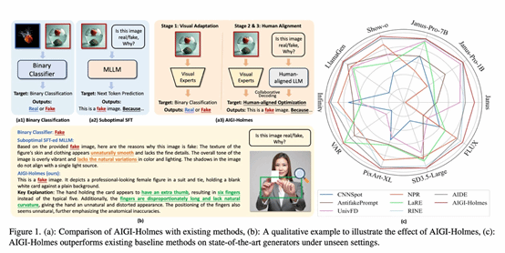 简介:AI生成内容(AIGC)技术的飞速发展,导致高度逼真的AI生成图像(AIGI)被滥用于传播虚假信息,对公共信息安全构成威胁。现有AI生成图像检测技术虽普遍效果良好,但存在缺乏可人工验证的解释依据以及对新一代生成技术(多模态大模型自回归生成图片范式)泛化能力不足这两大缺陷。为此,本文构建了大规模综合数据集Holmes-Set,其包含提供AI图像判定解释的指令微调数据集Holmes-SFTSet,以及人类对齐偏好数据集Holmes-DPOSet。本文还创新提出”多专家评审机制"的高效数据标注方法,该方法通过结构化多模态大语言模型(MLLM)解释增强数据生成,并采用跨模型评估、专家缺陷过滤与人类偏好修正实现质量管控。同时,本文还提出一个Holmes Pipeline三阶段训练框架:视觉专家预训练、监督微调和直接偏好优化,使多模态大语言模型适配AI生成图像检测任务,生成兼具可验证性与人类认知对齐的解释,最终产出AIGI-Holmes模型。推理阶段,本文还引入协同解码策略,融合视觉专家模型感知与MLLM语义推理,进一步强化泛化能力。在三大基准测试中的广泛实验验证了AIGI-Holmes的有效性。