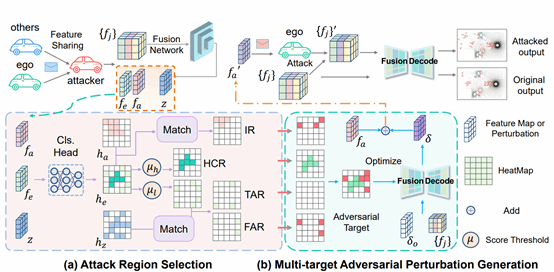 简介: 现有的协同目标感知对抗攻击方法缺乏隐蔽性,由于不加区分地扰乱传输信息,产生大量误报,而这些误报很容易被基于共识的感知防御机制检测到。本文提出了一种新颖的隐蔽对抗攻击方法Pretend Benign (PB),该方法利用协同感知机制的漏洞,使攻击者能够伪装成良性合作者。PB首先引入了攻击区域选择模块,根据置信度将感知区域划分为子区域,从而精确定位最佳攻击位置;然后利用多目标对抗扰动生成模块生成攻击信号,以此维持共识,赢得被攻击者的信任,从而影响协同目标感知的性能。该方法可用于提升多智能体协同目标感知的安全性。