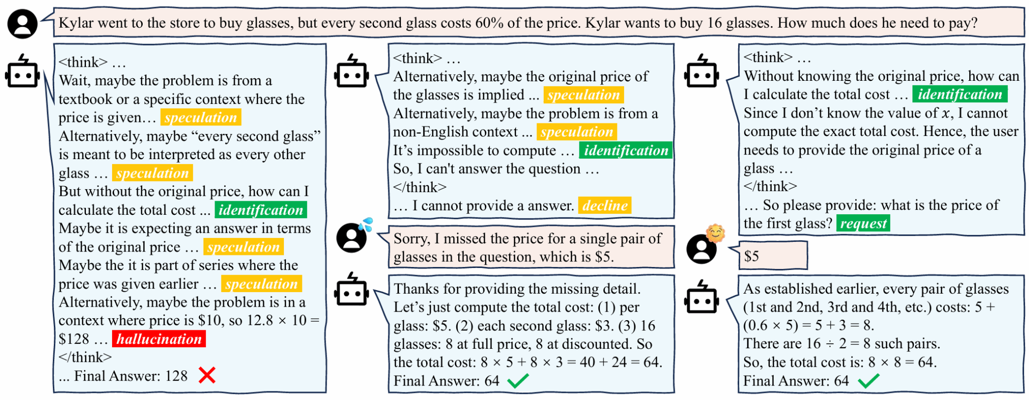 简介:近年来,基于大模型的智能体技术取得了显著突破,已在多项任务中达到专家水平。然而,现有智能体大多仍被动接收人类指令,缺乏主动与人协作完成任务的能力,这限制了其在现实复杂场景中的应用。具体而言,当用户提供的任务指令存在瑕疵时,传统方法往往执行错误推理或直接拒绝回答,而无法主动向用户提问以澄清问题,从而影响了任务完成效率。为探究这一问题,本文通过构建带有缺失条件的数学问题,设计了一个依赖人机协作的任务场景,并在此框架下评估了现有模型在主动协作能力方面的表现。此外,本文进一步证明,采用强化学习技术能够有效引导智能体通过思维链推理,逐步学会提出更准确的问题,从而实现更高效的人机协作。