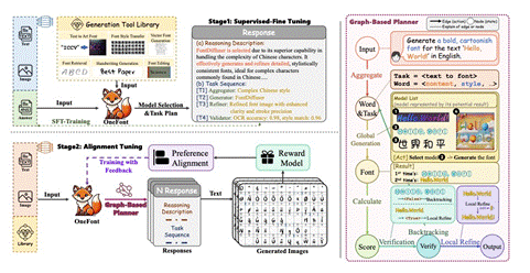 尽管最近在字体生成方面取得了进步,但从业者仍然在艰难的试错工作流程中挣扎。为了简化这一点,我们提出了OneFont,这是一个端到端的框架,通过自由形式的对话来解释用户的意图,无缝地集成了字形合成和细化模块。我们介绍了带有思想的字体(FwT)范式重构字体设计作为推理任务其中的模型 计划行动并阐明设计原理。OneFont通过两个阶段的训练来掌握 这个范例。首先,我们通过监督微调(SFT)在我们建立的1500个字体家族的新的综合基准上灌输推理能力。第二,我们提炼采用一种新的强化学习算法GRPO来指导模型的策略 通过评估视觉保真度、基本原理一致性和转换正确性的混合奖励。大量的实验表明,OneFont明显优于现有的方法。