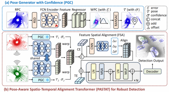 多智能体依赖于精确的姿态信息共享和对齐观测数据,以实现对环境的协同感知。然而,现有定位方法在GNSS信号受限环境下容易失效,导致难以实现一致的感知特征对齐。为此,本文提出一种基于激光雷达定位的无GNSS协同目标感知框架。首先提出了轻量级的置信度姿态生成器估计紧凑的姿态和置信度表示,其次设计了姿态感知时空对齐变换器,在捕获关键时间上下文的同时,执行置信度感知的空间对齐。此外,提出一个新的仿真数据集V2VLoc,用于验证定位和协同检测任务。在 V2VLoc和V2V4Real 数据集上的实验验证了本方法的有效性和泛化能力。