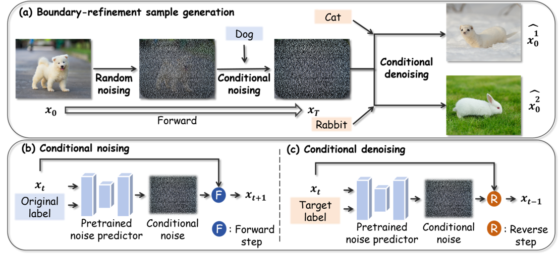 长尾数据会使分类器的决策边界偏向头部类别,从而削弱尾部类别的识别精度。基于扩散模型的生成式数据增强方法通过生成额外样本来缓解这一问题。然而,我们发现,尽管头尾迁移有助于在整体上平衡分类器的决策空间,但同时也会引入潜在的非局部特征混合,使不同类别的特征发生纠缠,导致决策边界重叠以及尾部类别分布偏移。针对这一现象,我们首先明确提出了“边界模糊”问题,并进一步设计了决策边界感知生成(DBG)框架。该框架通过生成具有信息量的近边界样本,强化模型对决策边界附近表征的学习能力。DBG在重平衡长尾数据分布的同时,使决策空间更加可分离,从而提升长尾学习效果。在多个标准长尾基准数据集上的实验结果表明,DBG在降低类别间重叠的同时,稳定提升了尾部类别精度及整体准确率。