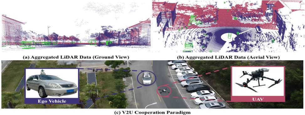 自动驾驶感知系统通常受限于遮挡、盲区以及有限的感知范围。已有的车车协同和车路协同范式感知主体为地面视角,难以有效应对大规模遮挡与远距离感知需求。本文提出首个面向车与无人机协同目标感知的大规模多模态真实场景数据集V2U4Real。V2U4Real由搭载有激光雷达与RGB相机的地面车辆与无人机协同采集,采集场景覆盖城市街道、校园以及乡村道路等多种交通环境,共包含超过56K帧激光雷达数据、56K张多视角相机图像,涵盖四类目标的70万个三维标注框。此外,本文构建了单智能体三维目标检测、协同三维目标检测以及多目标跟踪等基准任务。对多种当前先进模型的评估结果表明,车与无人机协同感知可显著提升复杂场景感知鲁棒性与远距离感知能力。